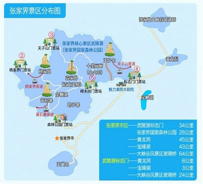 张家界三个必去景点每个风景区距离较远需要去汽车站坐大巴车周转或者让酒店老板帮忙安排私家车。